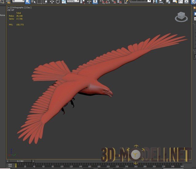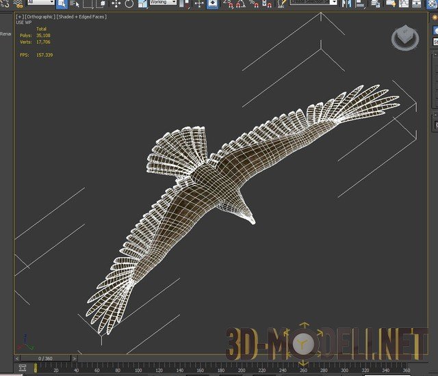 Модель птицы орел в полете, с расправленными крыльями. Добротно выполненный объект с хорошей сеткой, прямоугольными полигонами. В комплекте есть одна текстура с UV разверткой, разрешением 512x512px.