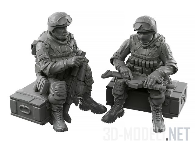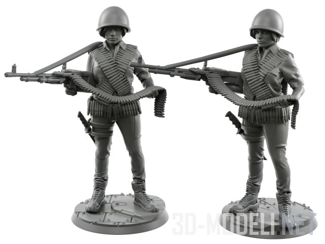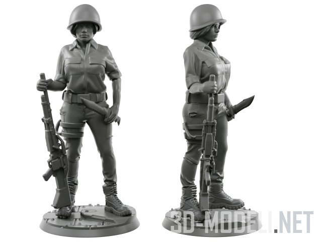Фигуры солдатов мужского и женского пола в военной форме, со стрелковым оружием. Боевая экипировка.