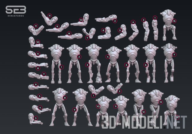 3D-Модель – 3D Print / Печать – SEB Miniatures – Super Battledroids (B2 Modular Kit)
