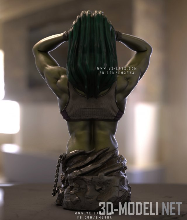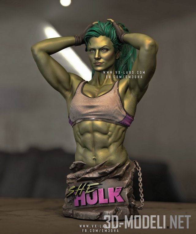 Это бюст Женщины-Халка. Сразу же привлекают внимание ярко выраженные кубики пресса и хорошо очерченная мускулатура. А решительный взгляд героини вообще говорит сам за себя!