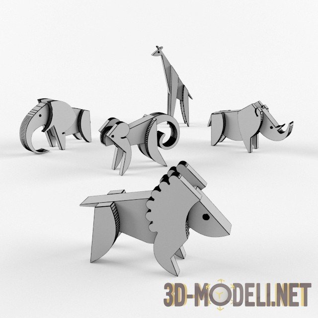 Забавные слоники, носороги, жирафы и другие животные в виде символических игрушек из дерева. Деревянные игрушки ESNAF известны тем, что изготовляются вручную. Можно использовать в качестве декора в интерьере детской. Есть текстуры и настроенные материалы.