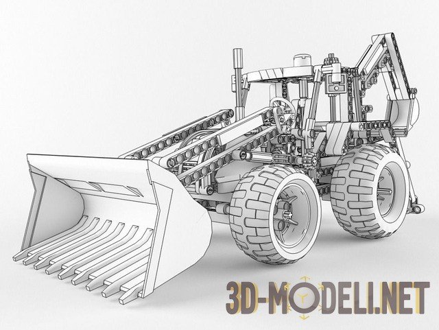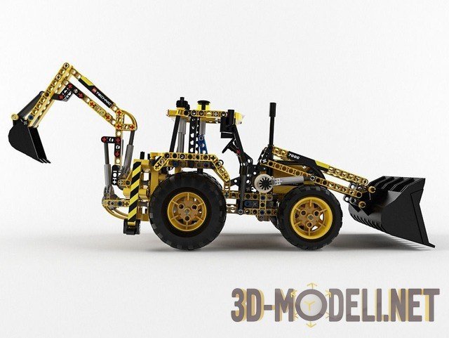 Экскаватор-погрузчик Lego Technic 8069 Backhoe Loader - качественная трехмерная модель игрушки из серии конструкторов Lego.