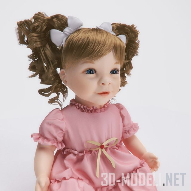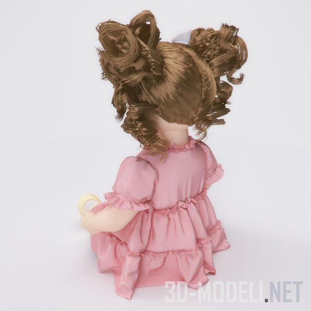 Кукла с нежным и приятным лицом, хорошая модель для интерьера детской комнаты. Кукла находится в положении сидя, ее удобно посадить на кровать или столик. У куклы пышные кудри и розовое платье, что сделает ее мечтой каждой девочки. Модель отличает высокое качество исполнения и реалистичные материалы.