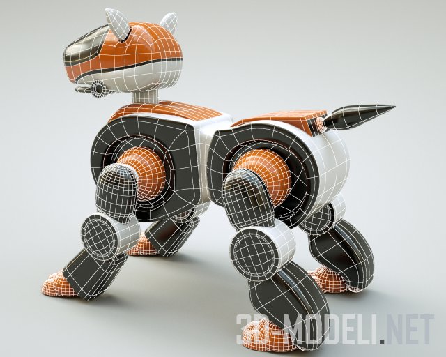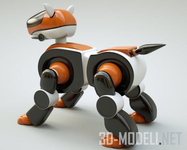 Уникальный радиоуправляемый робот, который имеет реалистичную внешность в виде собаки с лапами на шарнирах. Робот сделан из ярких деталей белого, оранжевого и графитового цвета. Он может показывать различные эмоции и издавать звуки.