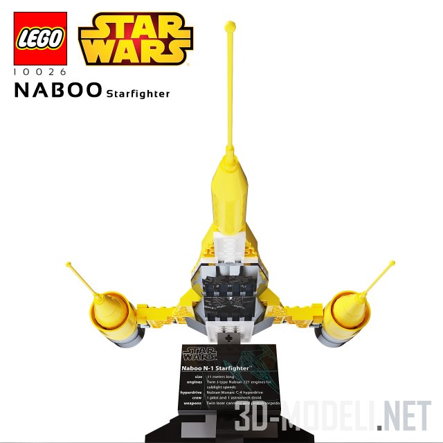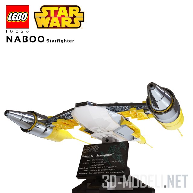 Качественная 3d модель LEGO Star Wars Special Edition Naboo Starfighter №10026. Этот яркий звездный истребитель станет отличным акцентом в детской комнате.