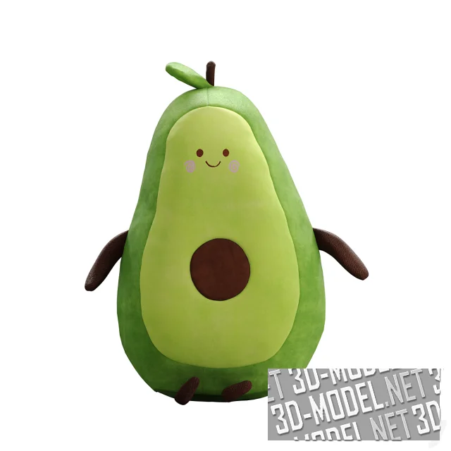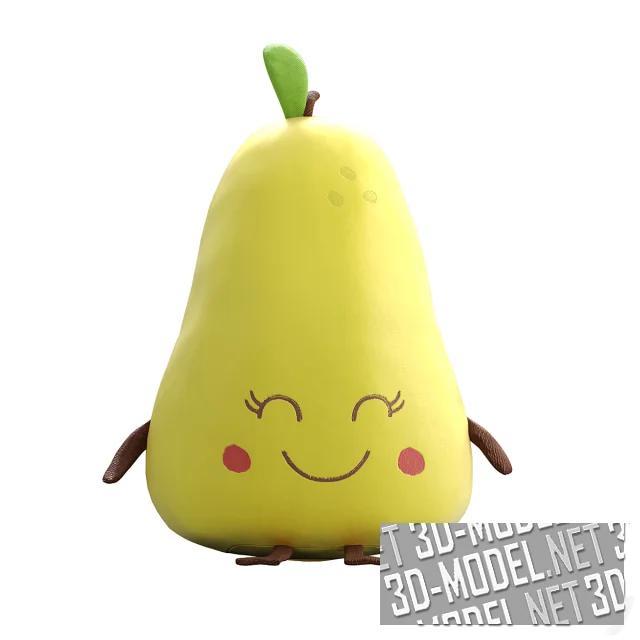 Мягкие игрушки для интерьера детской комнаты - яркие и привлекательные авокадо, груша и кот-батон. Реалистичная трехмерная модель высокого качества, отличный выбор для использования в различных проектах.