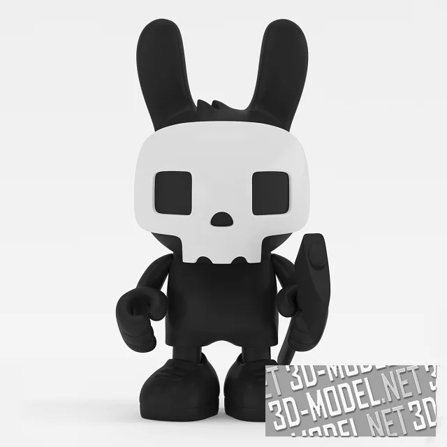 Коллекционная виниловая фигурка Funisher UberGuggi от Tenacious Toys. Выполнена в виде стоящего черного кролика с топором в левой лапе. На лице маска в виде черепа.