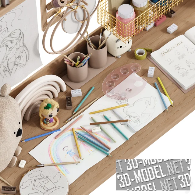 Качественная трехмерная модель для визуализаций детской комнаты. Настроенные материалы Vray, Corona и все необходимые текстуры содержатся в архиве.
