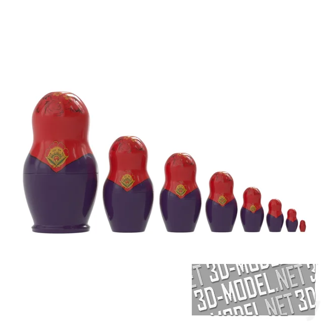 Традиционная деревянная русская народная игрушка - матрешка. Набор состоит из восьми разновеликих стилизованных фигурок с изображением женского лица, расписанных вручную, с соблюдением традиционных ремесленных техник. Фигурки полые (кроме самой мелкой), разделены на две части и способны собираться в самую крупную фигуру.