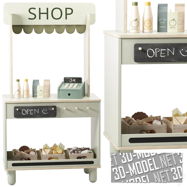 Детский игровой набор FLEXA The Shop and The Workbench – это очаровательный дуэт, объединяющий магазин и мастерскую, созданный для творческих игр и развития воображения ребенка. Мини-магазин с вывеской SHOP включает кассу, товары и деревянные ящички с миниатюрными продуктами: молоко, апельсиновый сок, шоколад и фрукты. Здесь ребёнок может почувствовать себя настоящим продавцом, а табличка «OPEN» с мелованной поверхностью добавляет реализма игре.