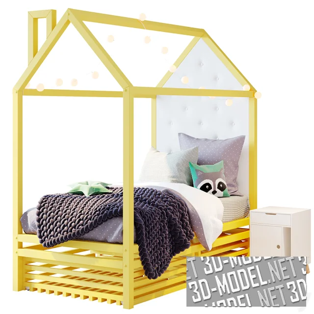 Изготовленная российской компанией DoodyWoody кровать в виде домика – привлекательное и уютное место в детской комнате. Милым и комфортным дополнением служит постельное белье от Zara Home. Яркие цвета отделки послужат привлекательным акцентом в интерьере. Благодаря вместительной тумбе от Zara Home можно содержать комнату в идеальном порядке.