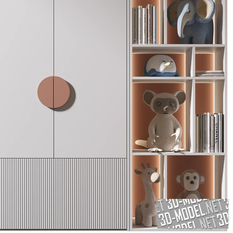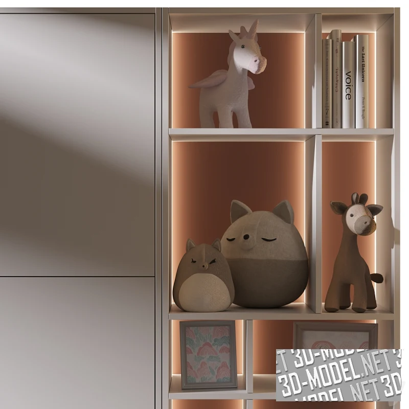 Шкаф-стеллаж с аксессуарами и декором для детской