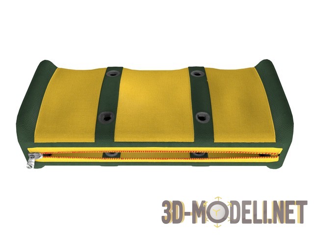 3D модель пенала для школьных и различных письменных принадлежностей, таких, как ручки и карандаши. Пенал сделан из плотной ткани ярко желтого цвета, с настроченными зелеными полосками. Сбоку по длинной стороне замок-молния. Можно положить его на письменный стол школьника при визуализации детской комнаты. Модель с текстурами.