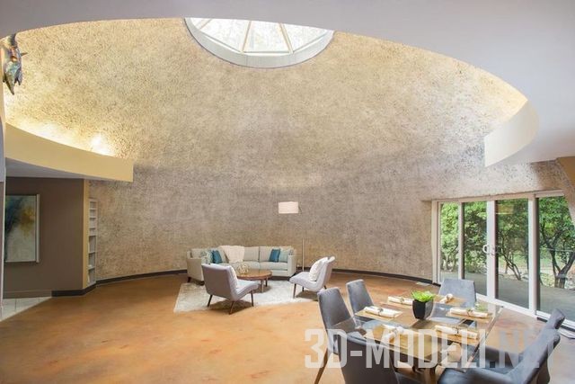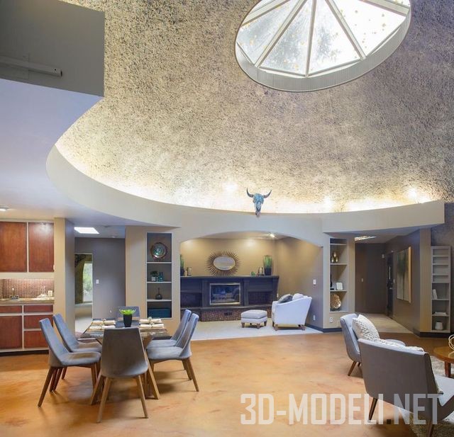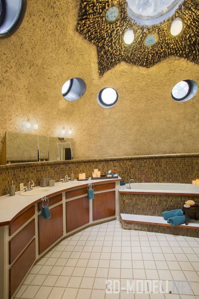 Ведь есть что-то знаковое в том, как потолки соединительных конструкций отрезали, чтобы открыть вершину самого большого купола, который расположен над гостиной. Меньшие купола включают в себя кухню, спальню и главную ванную комнату с гидромассажной ванной, окруженной фреской, подобной древнеримской.