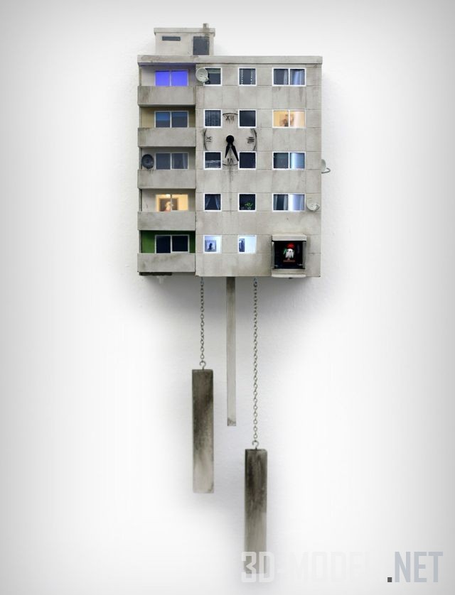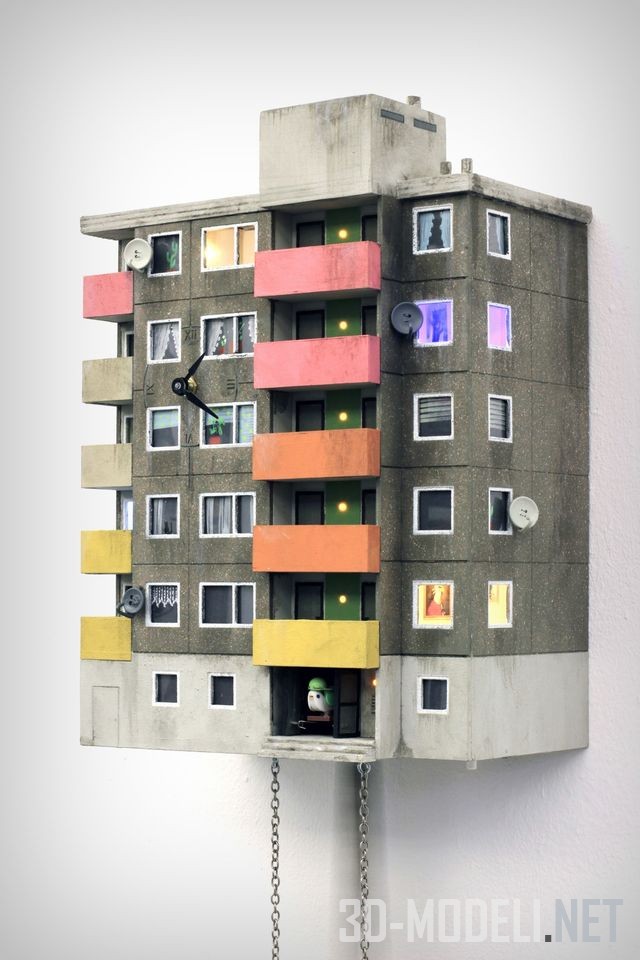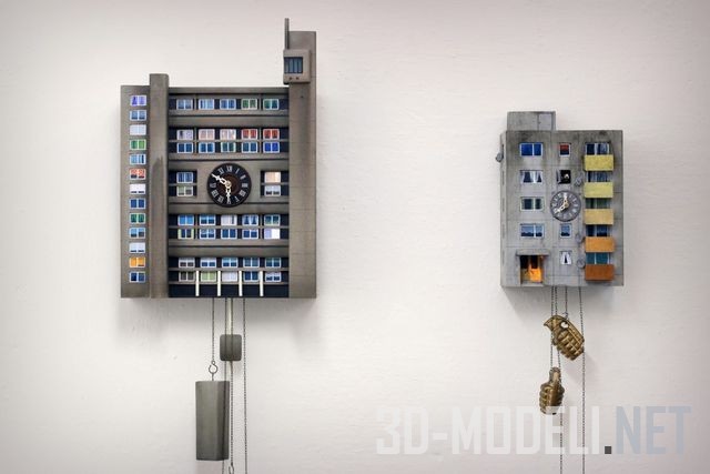 оригинальные часы хорошо впишутся в городские дома, потому что они также являются городскими домами. Вдохновленная архитектурой Brutalist и Bauhaus, серия «Cuckoo Blocks» предлагает миниатюрные версии Glenkerry House и горнолыжного курорта La Flaine, помимо собственных творений Циммермана.