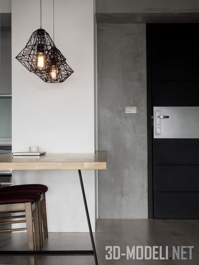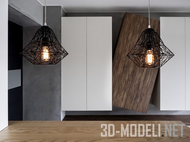 черных потолочных светильника, которые не только отвечают за освещение, но и вносят свою лепту искусства в интерьер.