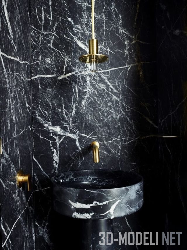 Черный мрамор, из которого сделана лестница, получен из карьера шестого поколения в Вероне, и контрастирует с более бледным каменным полом Fior di Pesco Carnico, снова появляющимся в поразительной ванной комнате этого удивительного, роскошного дома. Дуб, бархат и кожа помогают сделать пространство теплым и приветливым, а широкие просторы остекления на задних стенах обеспечивают много естественного дневного света.