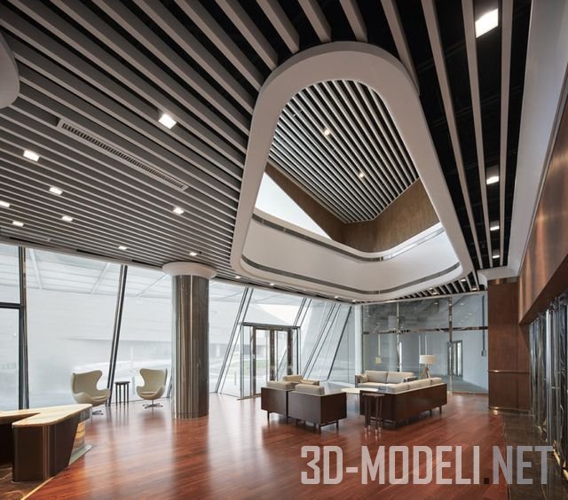 При углублении во внутреннее пространство территория начинает расширятся в естественном потоке форм, исходят от моста. Гладкие линии создают иллюзию плавных переходов между конструкцией каждого здания и окружающей водой. Пространства разделены и определяются большей активностью, чем жесткие стены или разделители, заставляя все внутренние помещения чувствовать себя связанными, несмотря на то, что они посвящены различным задачам.