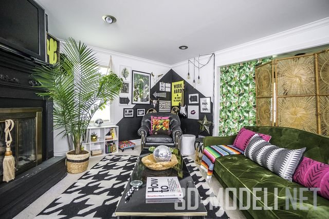 Основная идея состоит в том, чтобы эклектика излучала тепло вместо беспорядка. Смелые обои в качестве фокуса идеальны из-за того, что интерьер получается веселый, смелый и очаровательный, но при этом содержит нужный элемент эклектики. Этот стиль имеет слишком много движущихся частей сразу, поэтому, чтобы избежать чрезмерного беспорядка деталей, акцентная стена,