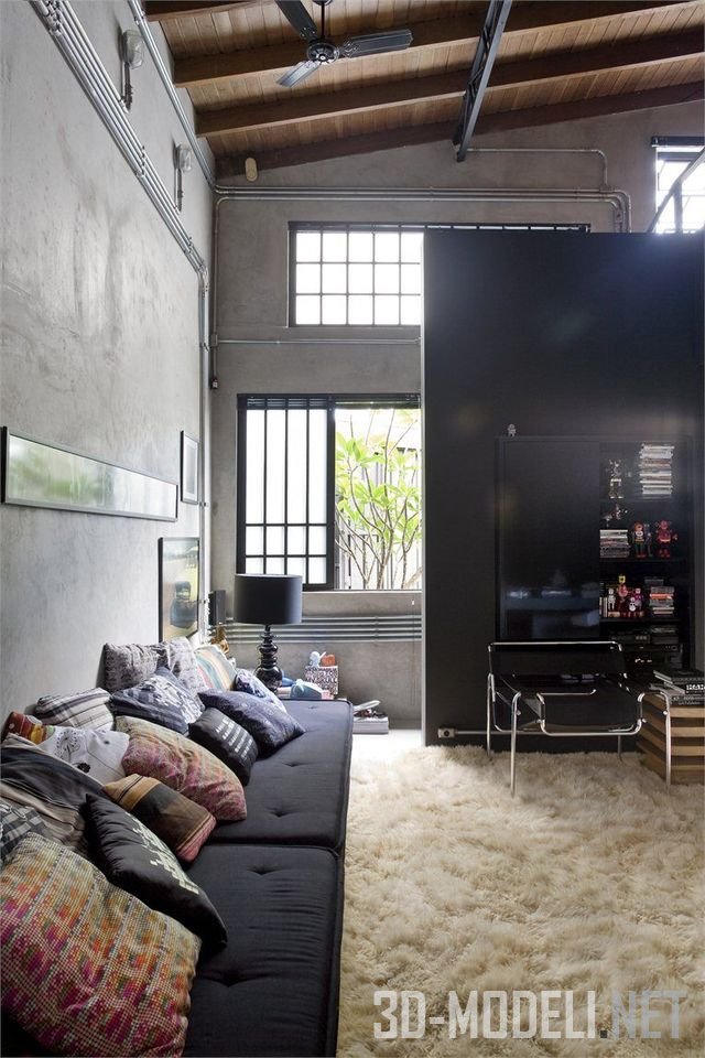 в интерьере в стиле лофт. В данном случае лучше разместить отделку так, чтобы не прятать вентиляцию и трубопроводы. Это приводит к появлению промышленного шикарного внешнего вида.