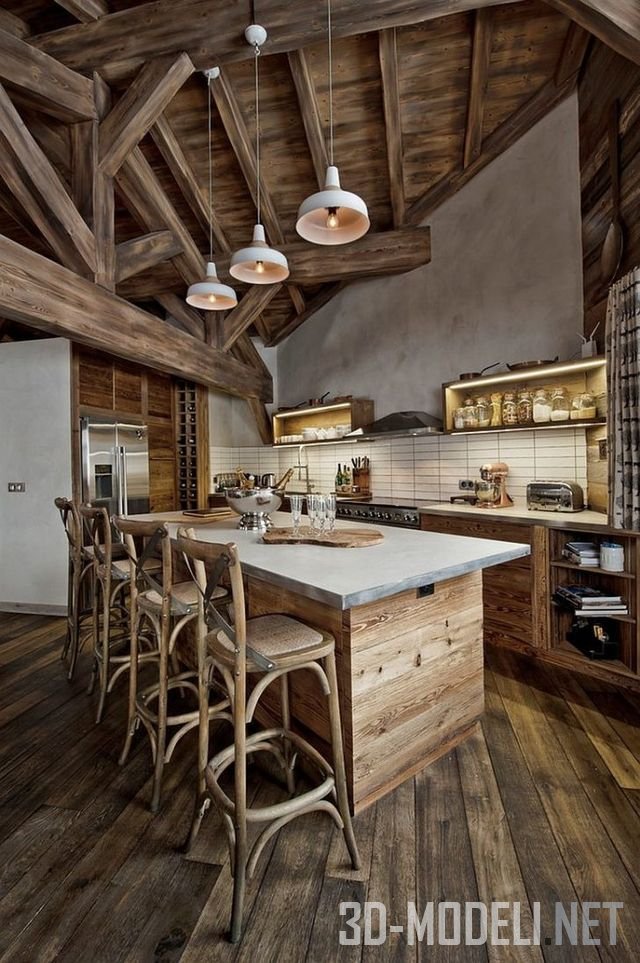 современном кухни сочетание деревянного потолка с белой плиткой. Белые плитки очень легко выстраивают пространство. Традиционный деревянный потолок на пару с белой или черной плиткой смоделирует деревенский, уютный вид.