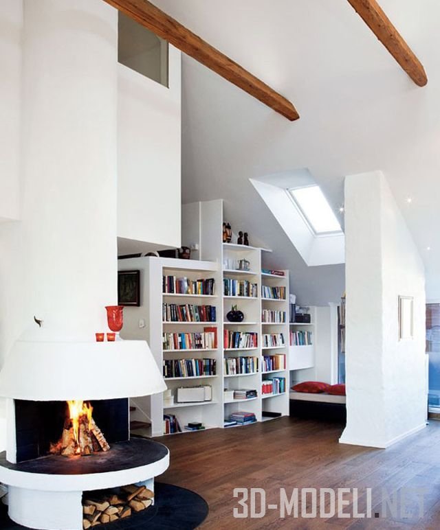 Размещение коллекции книг на открытых полках стеллажа станет простым способом введения цвета (если, конечно, не все книги черно-белые!).