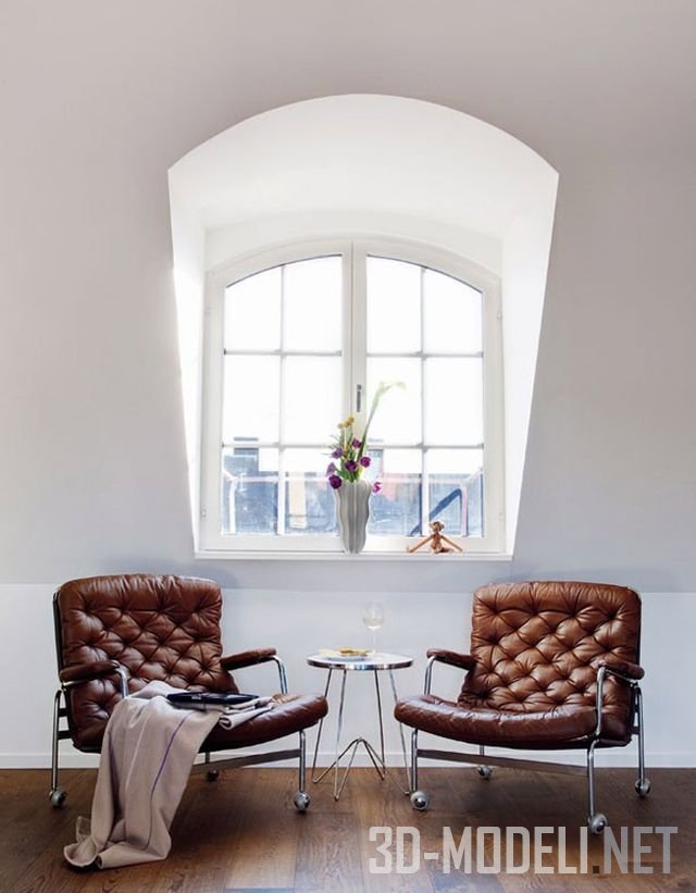 Основная цветовая палитра этой квартиры - черный, белый и коричневый оттенки. Уютный уголок - самая яркая комната. Здесь стоит обратить внимание на то, как взрыв цвета происходит от ковра, кресла и