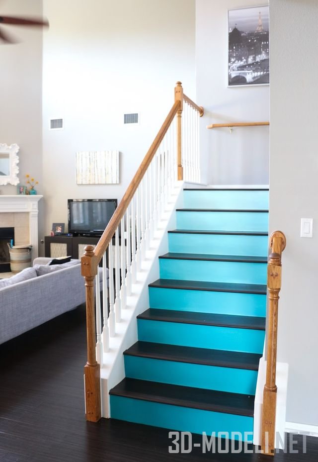 Великолепно смотрится белая лестница с ярким цветом. При желании добавить цвет можно применить красочные безделушки. Идея состоит в том, чтобы эти цвета стали сигнатурой, основным фокусом пространства, а белая лестница выполняла роль дополняющего фона. Для простого, но творческого прикосновения, можно украсить нижнюю часть