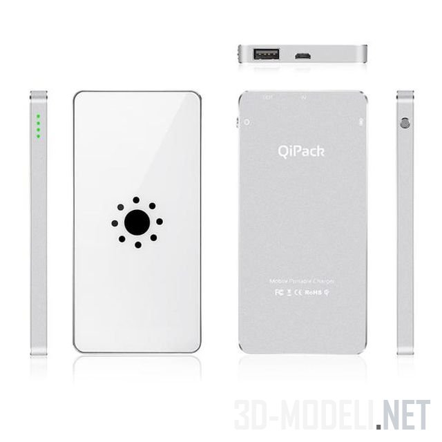 проводов наушников и громоздких зарядных устройств. Материал изготовления: алюминий и стекло. Размеры QiPack: 65 x 132 x 8,9 мм. Вес составляет 105 г.
