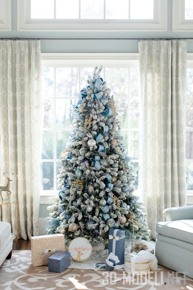 наряженная елка, с добавлением натуральных элементов и текстур, также внесет уют и атмосферу праздников в интерьер. Можно добавить природные акценты, деревянные декоры, которые оживают в сочетании с белым, серебряным и двумя этими цветами. Кроме того,