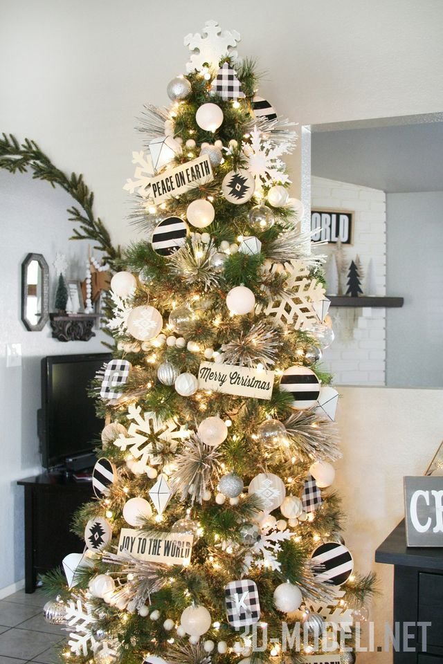 Черное и белое – одна из интересных идей для новогодней елки. Черные и белые игрушки на зеленой хвое дерева перенесут традиционный декор на следующий уровень, а высокую моду доставят прямо к елке! Добавив классические, теплые белые оттенки и лампочки, чтобы улучшить традиционную привлекательность елки, можно поучить непредсказуемый, но однозначно шикарный результат.