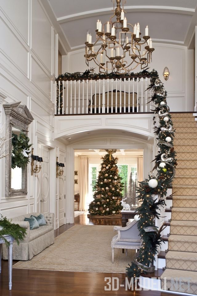 классической лестницы используется на протяжении веков, и это действительно классический, самый рождественский вариант. Цветочные элементы и интерьерные мелочи придадут более личное ощущение универсальной классики.