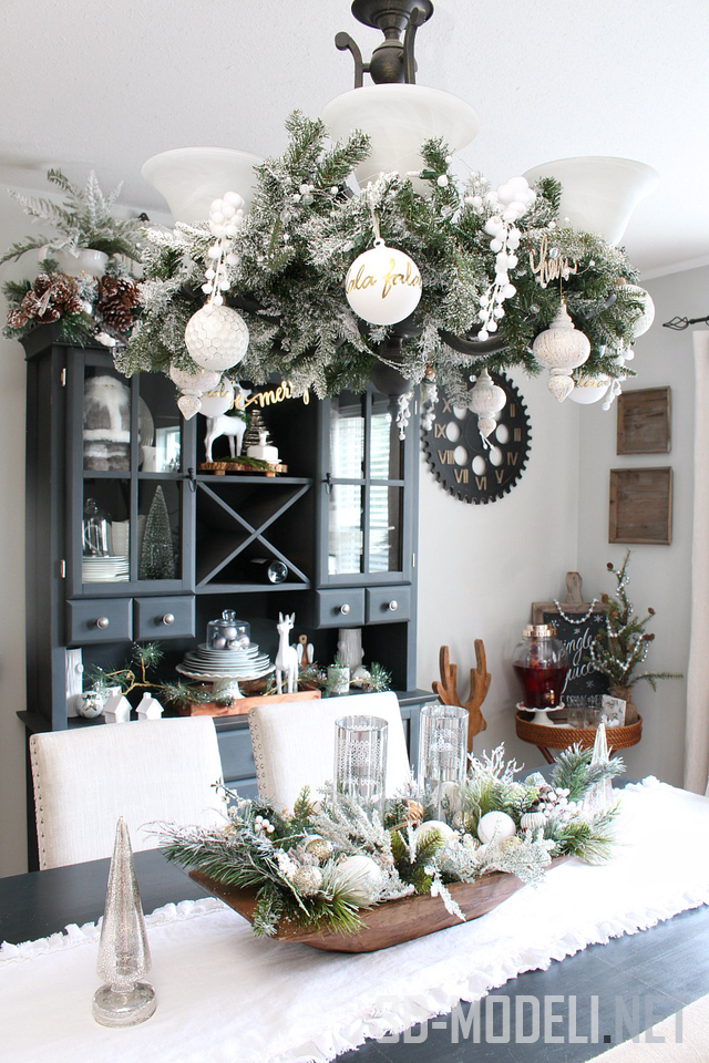 Можно использовать в теме декора деревенские, фермерские зимние элементы, которые сделают его теплым и уютным, с намеком на природное очарование. Есть что-то очень привлекательное в использовании естественных аксессуаров, которые словно только что принесли с улицы и которые очень привлекательно смотрятся в помещении. Удачным примером могут служить