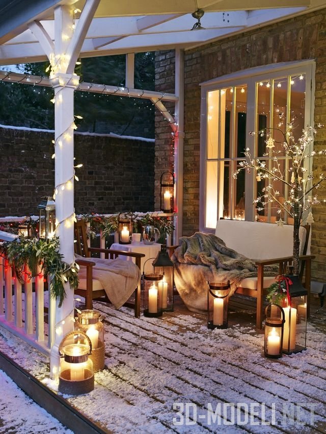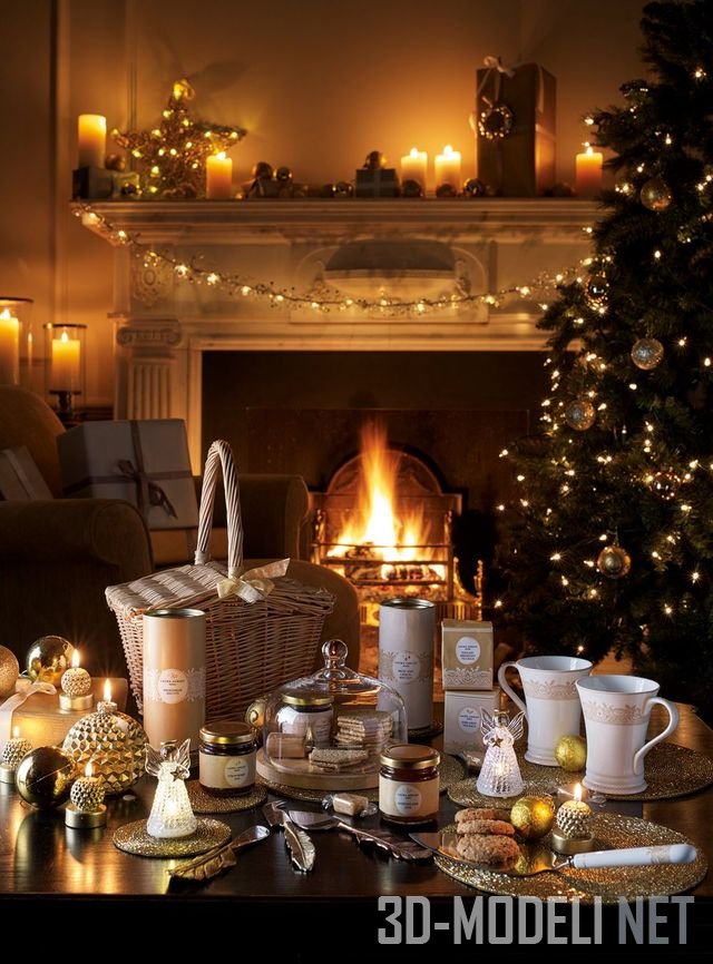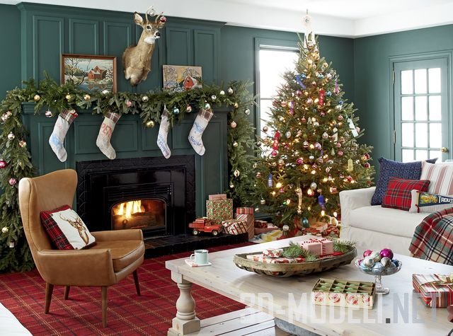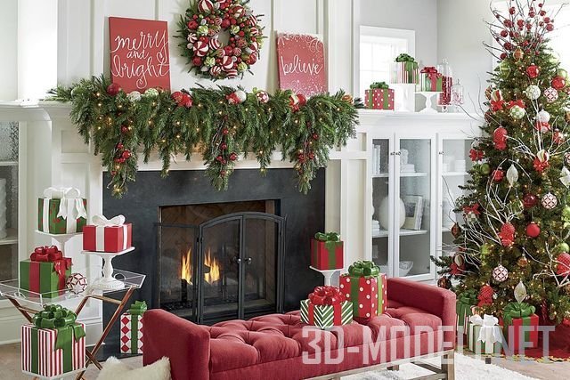 рождественскую композицию с камином можно включить нарядную елку, что еще больше усилить впечатление праздника.