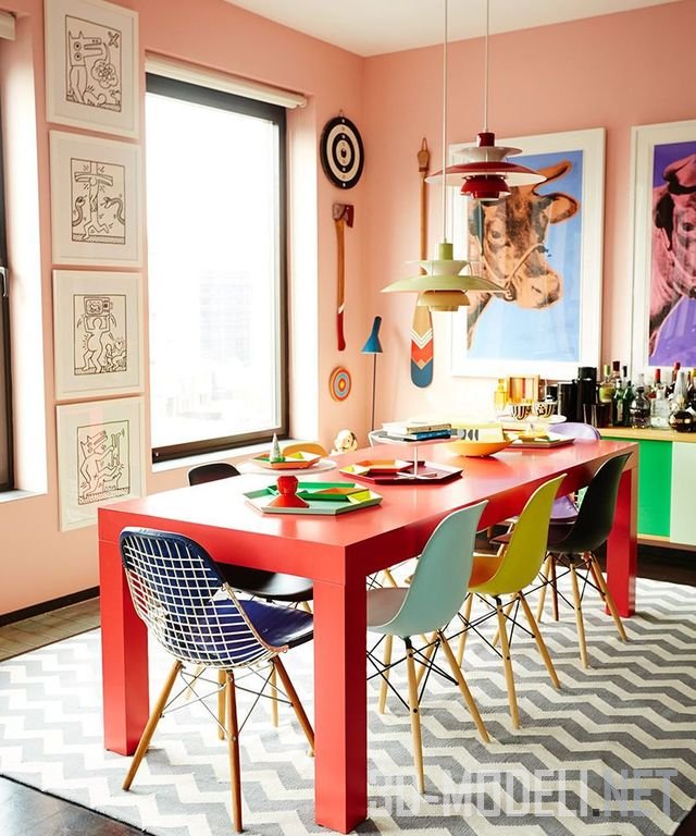 стулья в уникальных цветах, которые очень оживляют комнату. Выберите любой дерзкий оттенок: желтый, оранжевый, красный, синий или даже зеленый, и добавьте его к тому цвету, который уже оживляет комнату.
