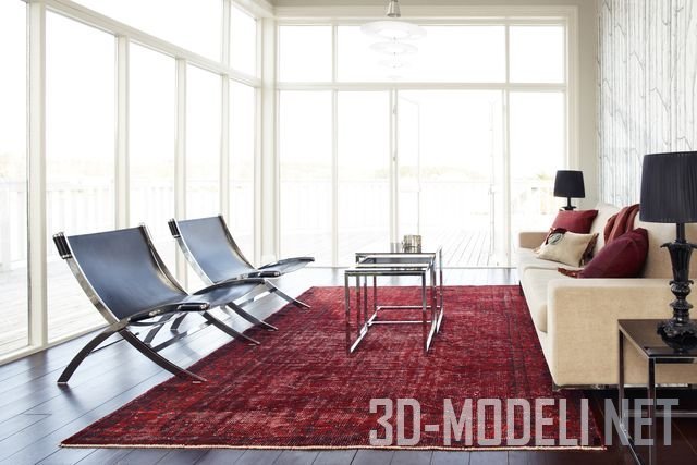 Если в пространстве присутствует упрощенный стиль оформления, хорошо подойдет ковер, который наполнен текстурой. Наличие