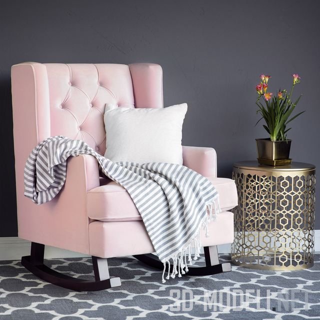 кровать также может быть розовой! Небольшой, изящный пуфик (как