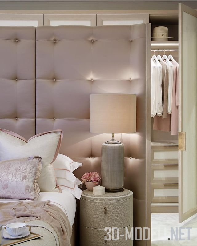 кровати с высоким изголовьем, особенно ярких цветов и текстур. В качестве примера можно привести