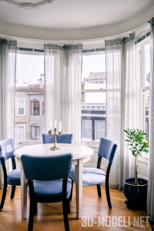 цветочные шторы будут смотреться интересно в интерьере белой столовой.