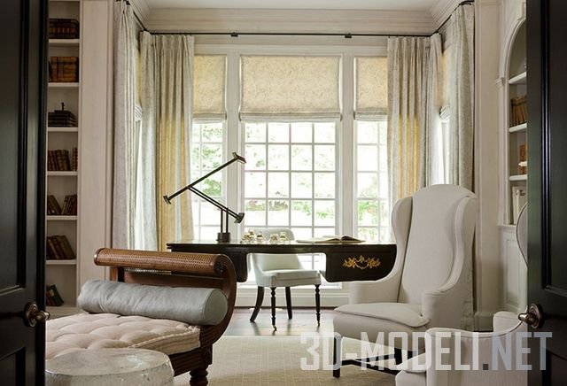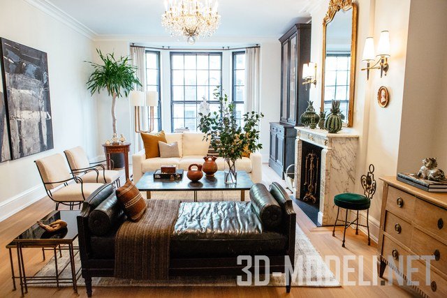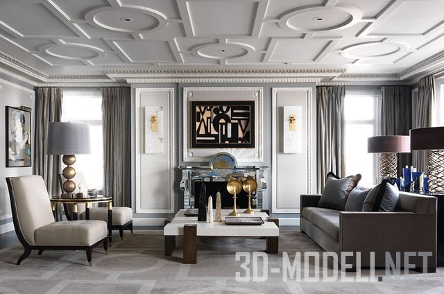 Мебель из темного дерева, богатые нейтральные ткани и сдержанные аксессуары на фоне матово-белых стен излучают изощренную мужественность, присущую этому дизайнеру.