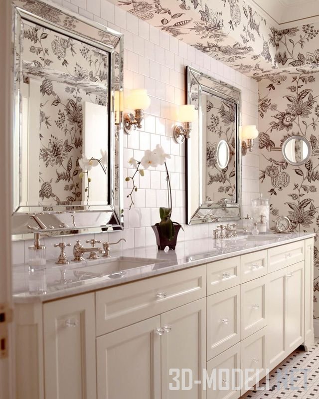 красочные узорчатые полы вместо простых. Флористический декор обладает пресловутой женской ноткой, но когда он добавляется редко, то может придать неповторимый вид комнате, которая менее женственная, но более современная. Такой современный, почти эклектичный акцент сделает ванную комнату самой красивой и уютной.