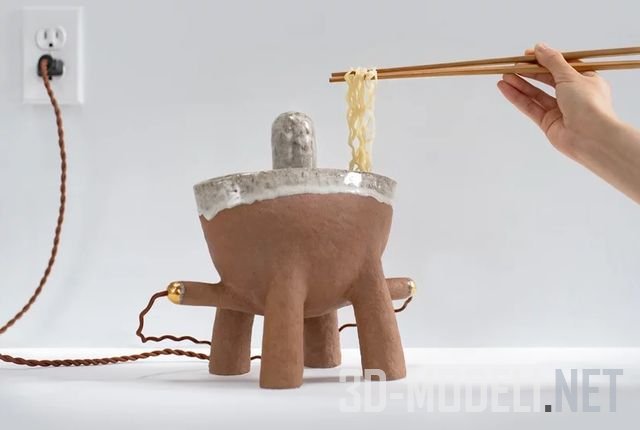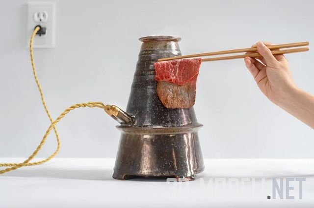 керамические сосуды, в каждом из которых были запущены электрические цепи. При подключении к источнику питания они излучают интенсивное тепло, которое можно использовать для приготовления пищи. Серия состоит из трех разных форм. первый - это предмет в форме конуса, покрытый металлом, который можно использовать для приготовления различных блюд. второй и третий вариант имеют более округлую,