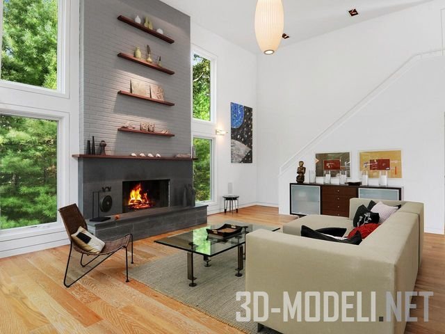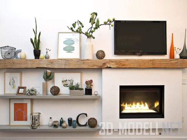 Можно добавить к камину встроенный стеллаж, но нужно проследить, чтобы он был открытыми и просторными, чтобы иметь современный подход, который добавит комнате общей привлекательности.