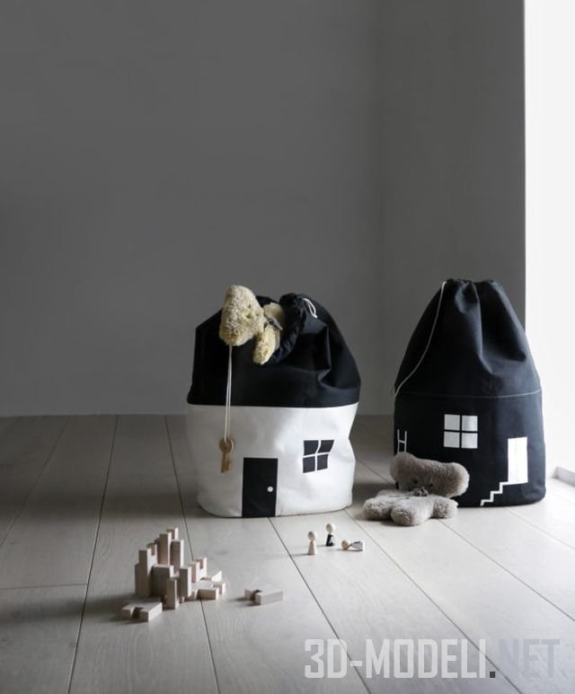игровой детский домик также служит вместилищем для игрушек, но сумка-дом от Rock & Pebble по праву может считаться действительно универсальным хранилищем. Можно использовать ее как новый дом для всех игрушечных друзей или как мешок,