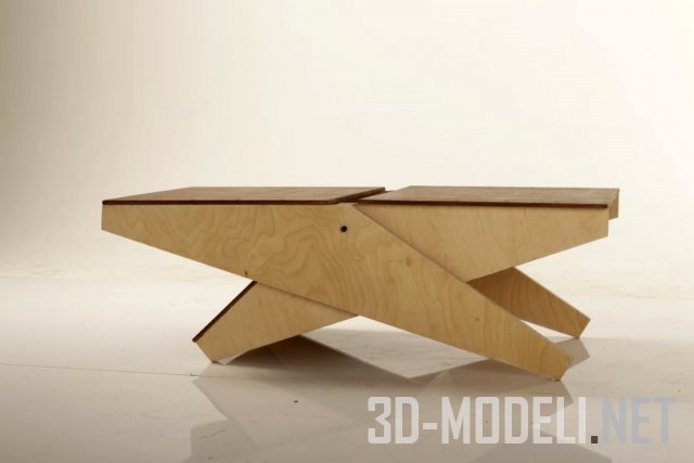 скачать трехмерную модель складного стула), превращаясь в крепкий стул, или опускается вниз, превращаясь в стол, который находится чуть выше фута от пола.