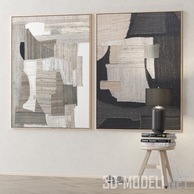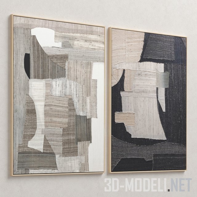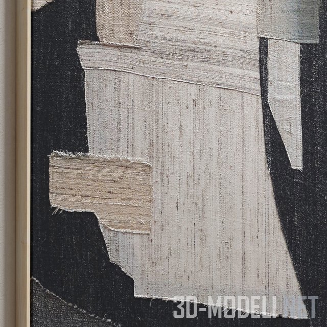 Холст с абстрактным изображением. Основной цвет картины бежевый и темно-синий, что смотрится очень гармонично. Холст вставлен в раму, предлагается пять различных материалов (белый, черный, серебро, дерево, золото). Каждый из них подходит к изображению. Размеры каркаса: 130 x 130 см.