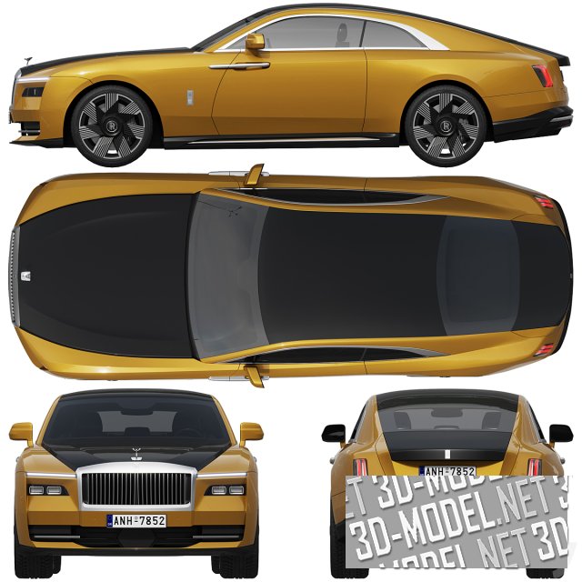Современный автомобиль Rolls-Royce Specter, в основе которого совершенно новая база, именуемая Архитектура роскоши (Arhitecture of Luxury). Аккумуляторы интергрированы в раму автомобиля. За счет этого жесткость кузова повышена на 30%. Этот мощный электрокар развивает мощность 585 л.с. и максимальный крутящий момент 900 Нм.