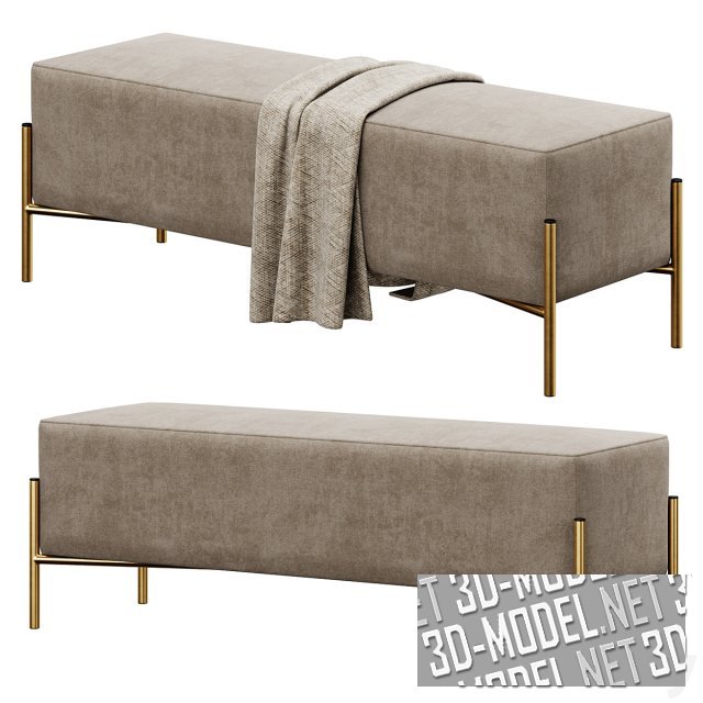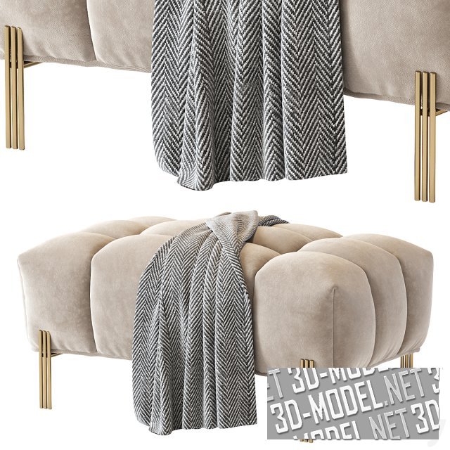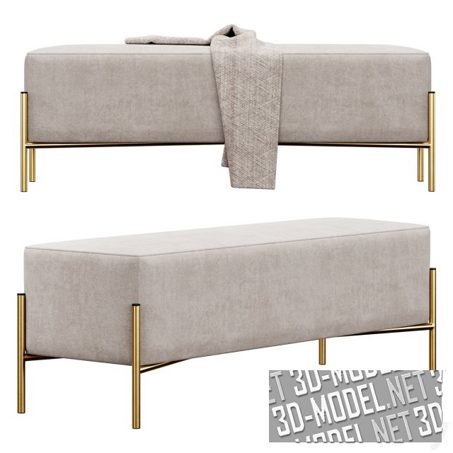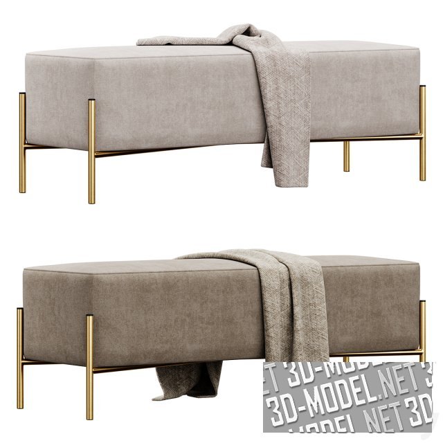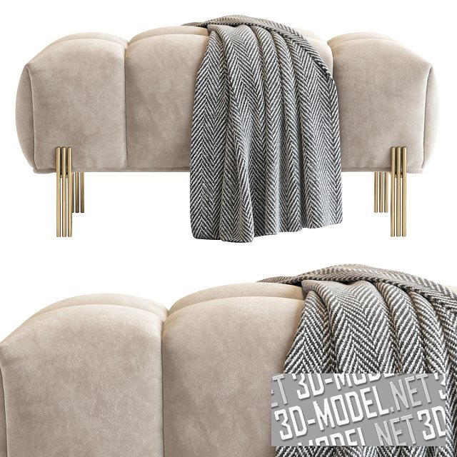 Качественная трехмерная модель для дополнения реалистичных интерьерных визуализаций. банкетка, современный