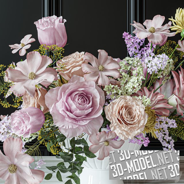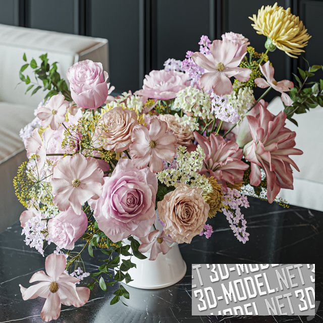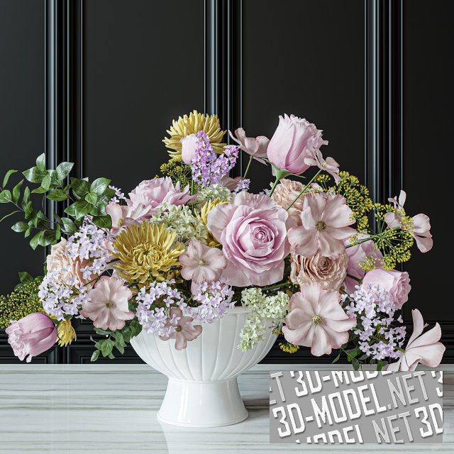 В комплекте современная керамика (серебристая ваза «Лунный кратер», вазочка для конфет, вазы из белой и темной керамики в афро-стиле), зеленый букет из злаковых трав, листьев и нераскрытого бутона в вазе прозрачного стекла, книги, плоские коробочки из серого бархата с металлическими застежками.