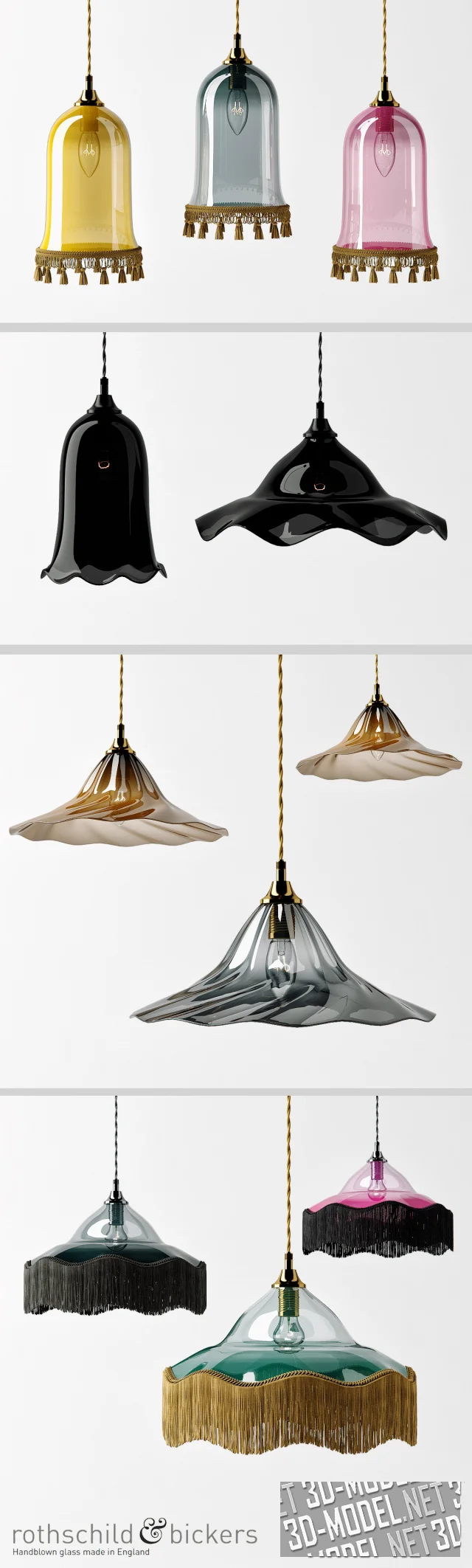 Коллекция подвесных светильников Rothschild & Bickers воплощает сочетание художественного мастерства и современного дизайна. Каждое изделие выполнено вручную из выдувного стекла с характерными формами, плавными изгибами и богатой цветовой палитрой. Лампы представлены в нескольких вариантах: